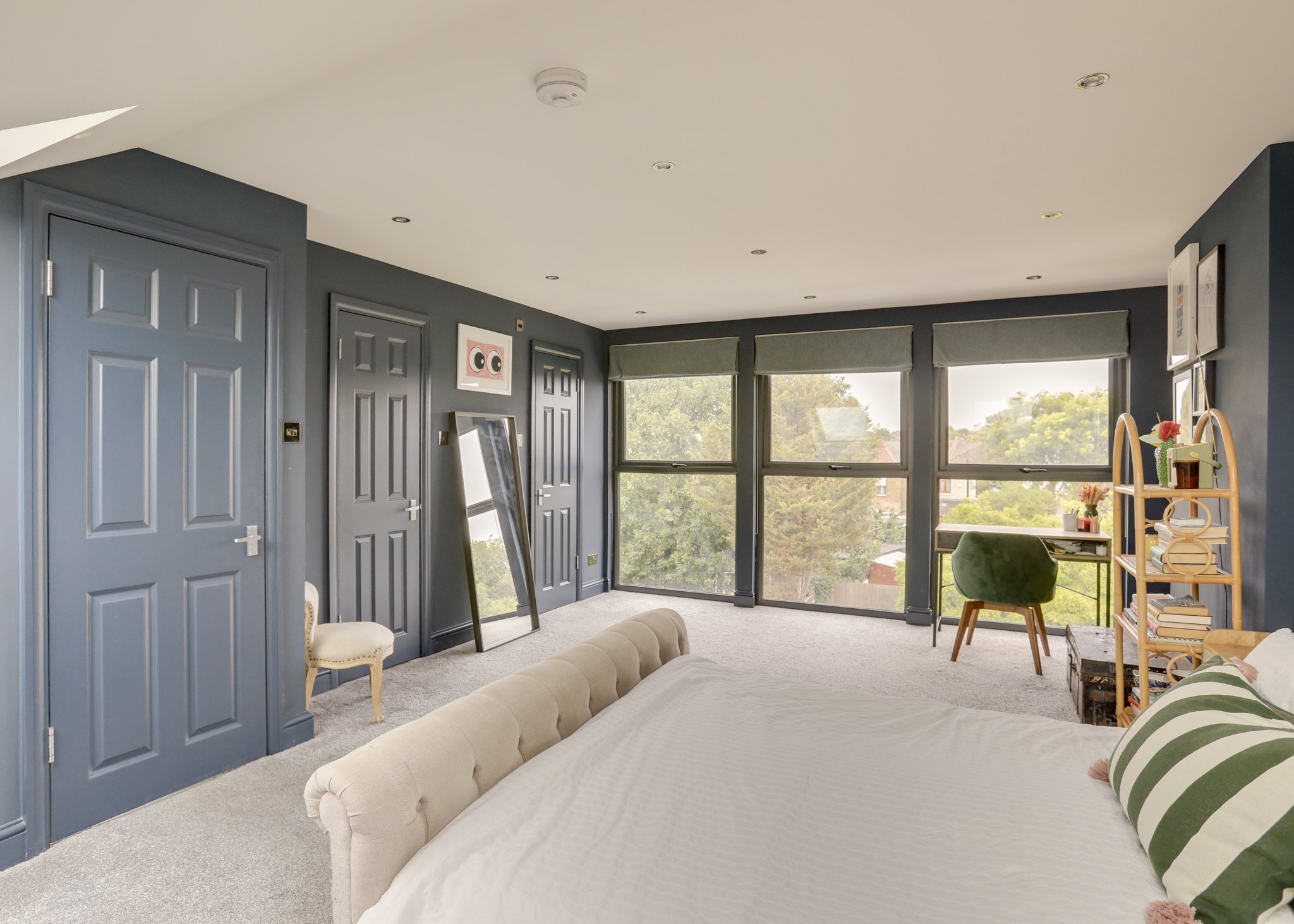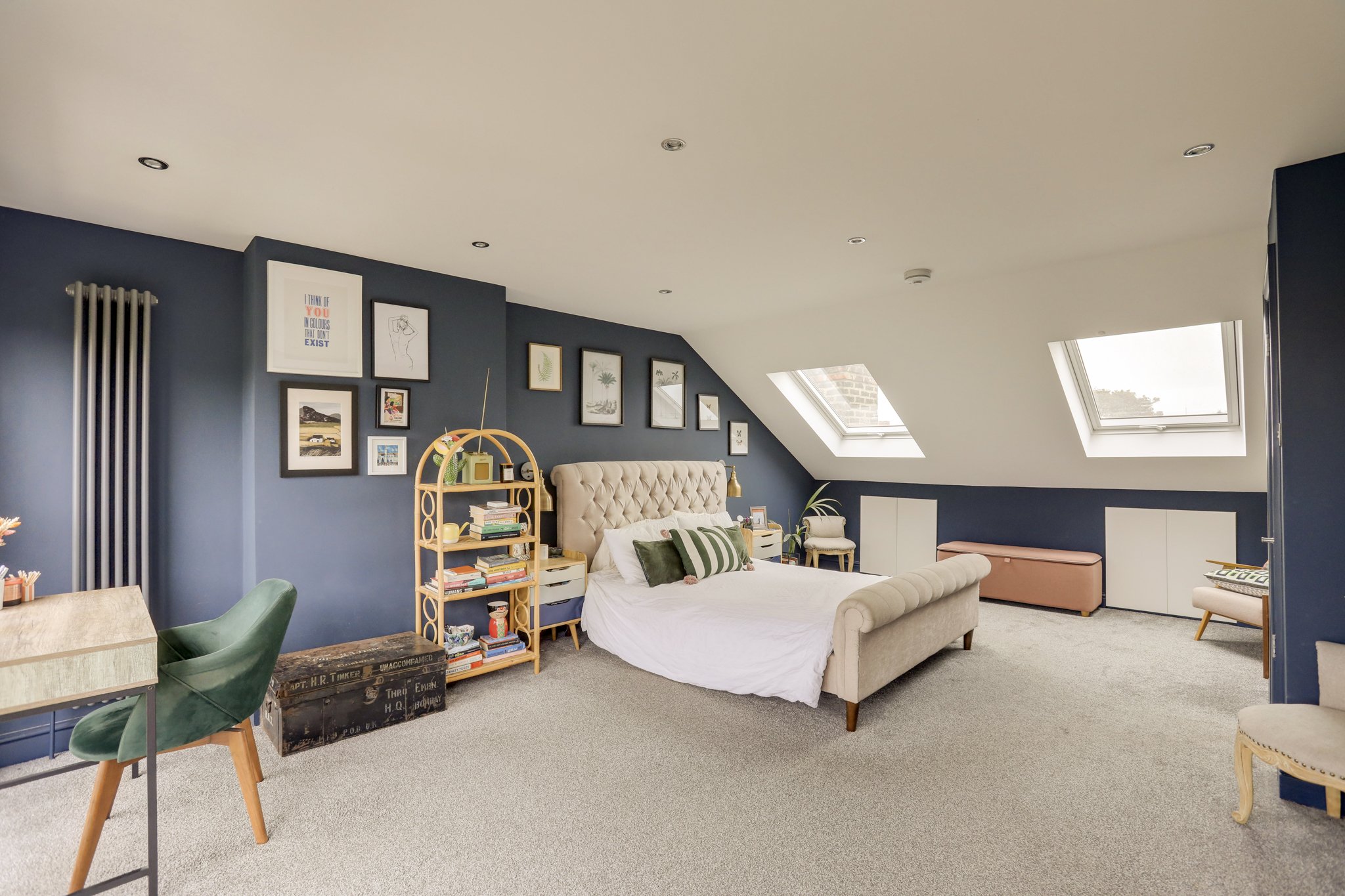 Upstairs, the first floor offers three double bedrooms alongside a stylish four-piece family bathroom. The loft has been converted to create a spectacular principal suite, complete with a walk-in closet and a luxury en-suite shower room. Flooded with natural light, this space feels bright, airy, and beautifully finished.