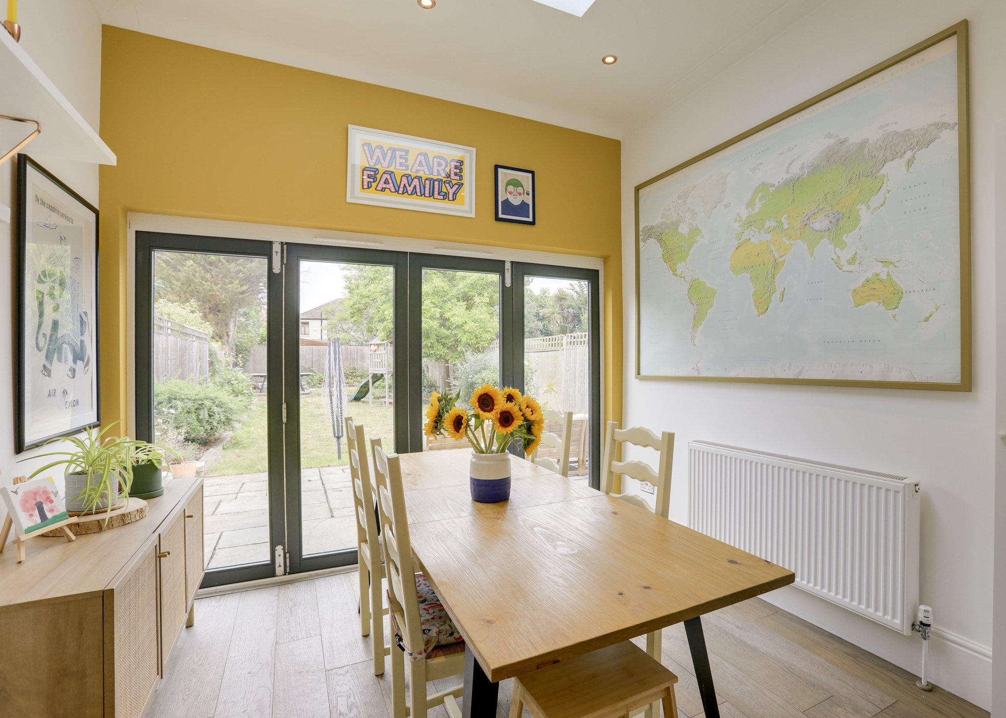 A light and spacious four-bedroom semi-detached family home, thoughtfully extended and benefitting from a driveway and garage.