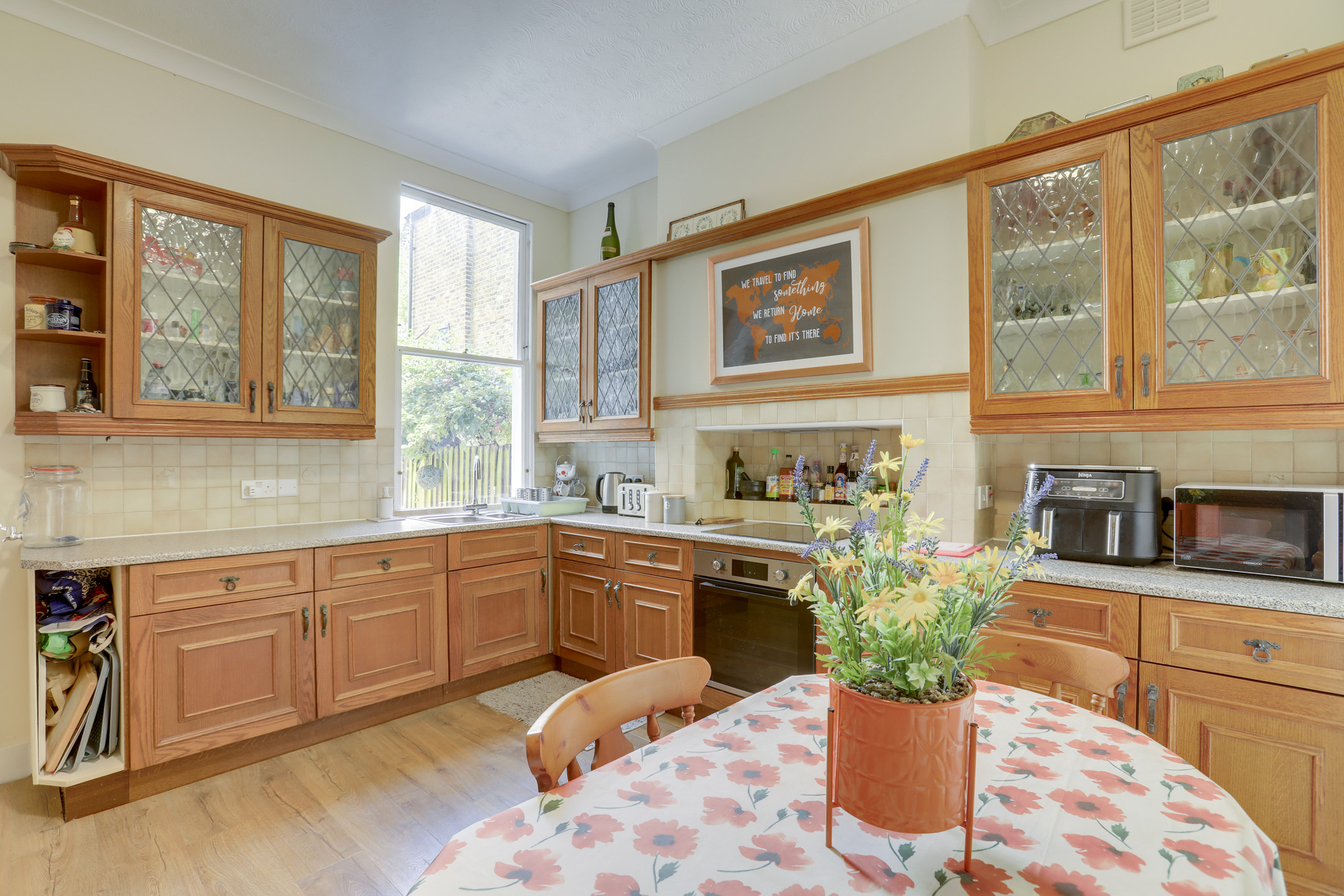This impressive five-bedroom semi-detached house presents a wonderful opportunity for families seeking generous living space in a highly sought-after residential location. The property is arranged over three floors and offers a harmonious blend of traditional features and modern finishes. An inviting entrance hall leads to a spacious lounge with a feature fireplace and bay window, providing a bright and welcoming atmosphere. The open-plan kitchen and dining area is well-appointed with integrated appliances, ample countertop space and French doors opening onto the garden, making it ideal for entertaining. A separate utility room and downstairs cloakroom add convenience for busy family life. Upstairs, you will find five well-proportioned bedrooms, including a principal bedroom with en-suite shower room, as well as a contemporary family bathroom. The flexible layout offers the potential for a home office or playroom, catering to a variety of lifestyle needs.