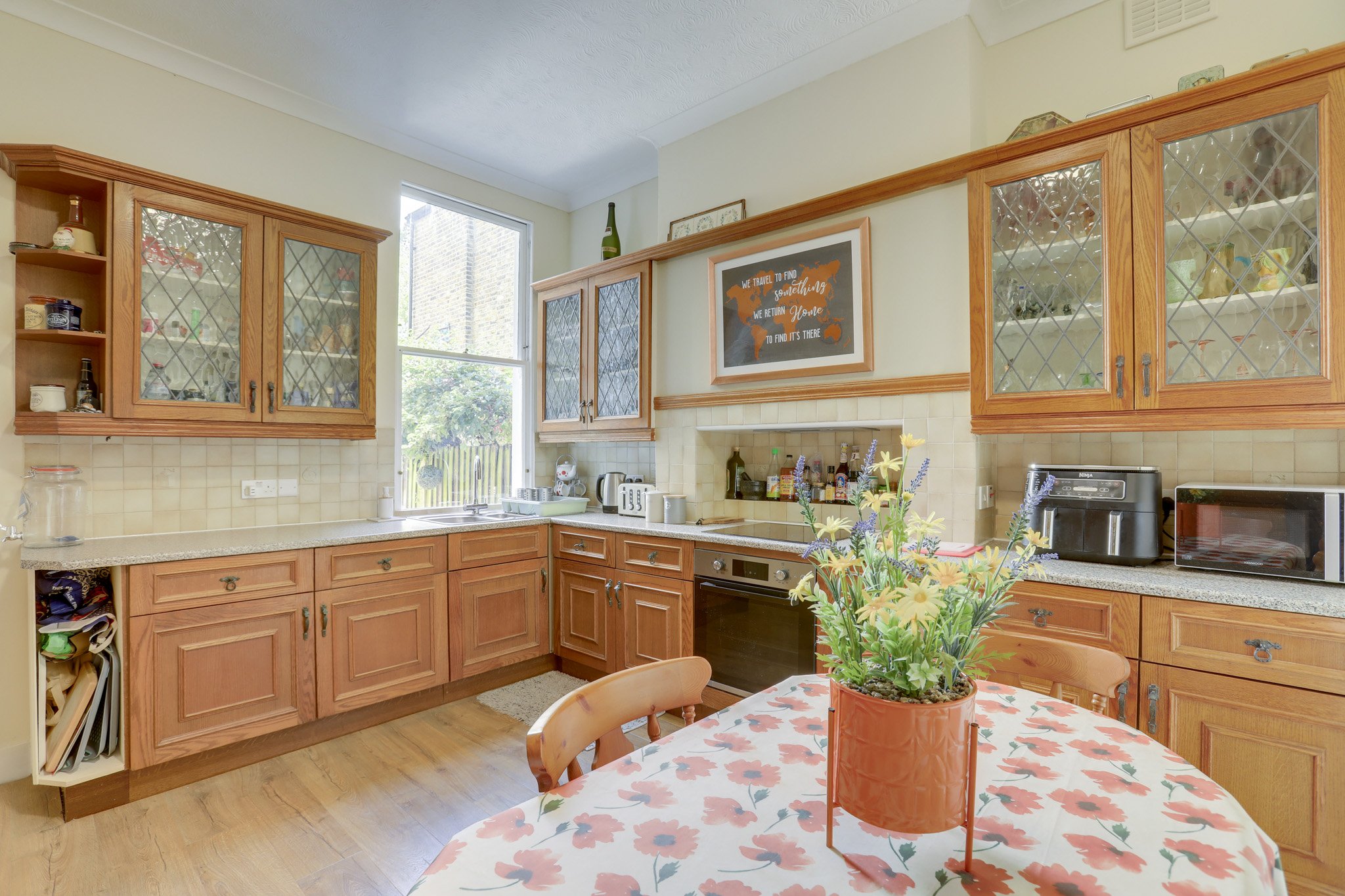 Inside, you’ll find two generous reception rooms - one with a bay window and feature fireplace, the other opening out into a sunroom with views of the garden. The kitchen is fitted with modern appliances and has plenty of storage, while a useful utility room with a shower and WC adds everyday practicality. Period details like sash windows, picture rails, and original fireplaces are found throughout, giving the home warmth and personality.